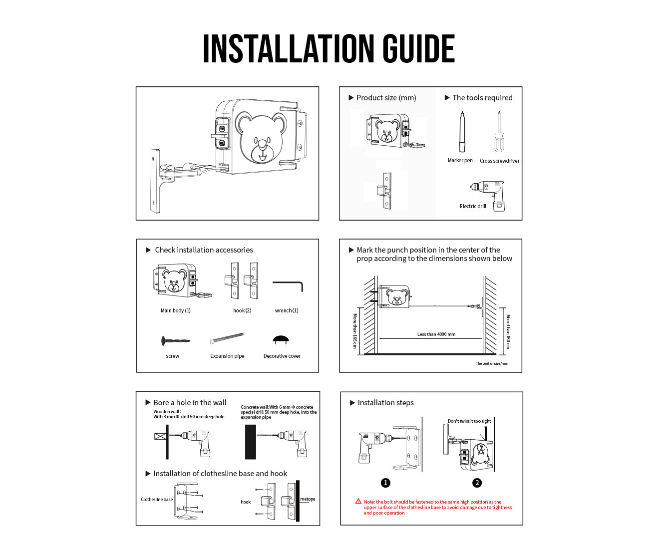 - Note: The walls must consist of sturdy, smooth materials like tiles, glass, or wood. Do not use weaker wall types like whitewashed walls, painted walls, or wallpaper, unless we install them by punching holes.