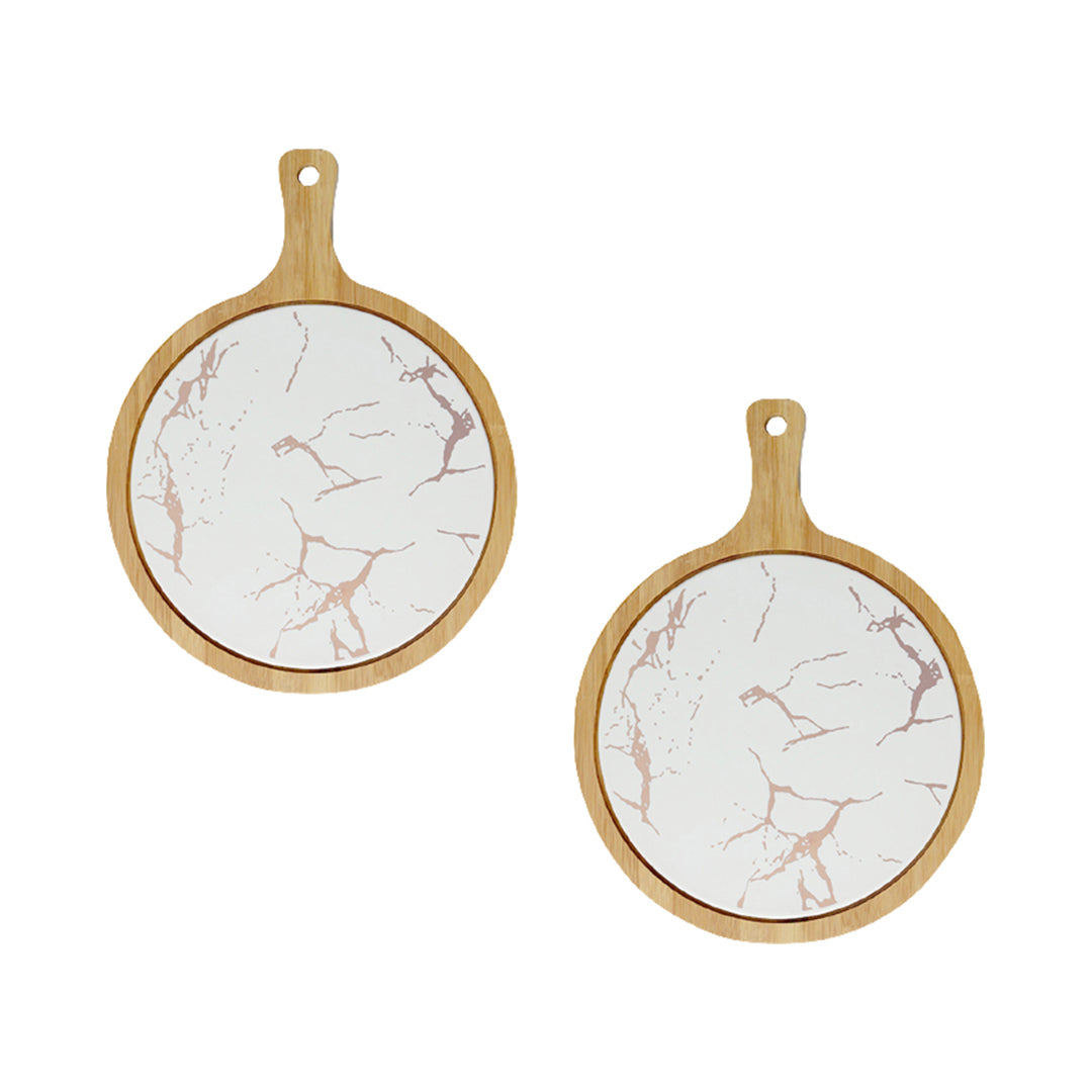 SOGA 2X 30cm White Circle Wooden Serving Tray Slate Steak Serving Platter Chopping Board Paddle Home Decor • LUZ-WodE595X2